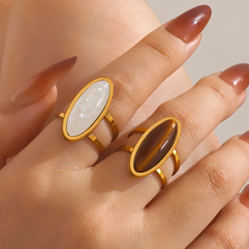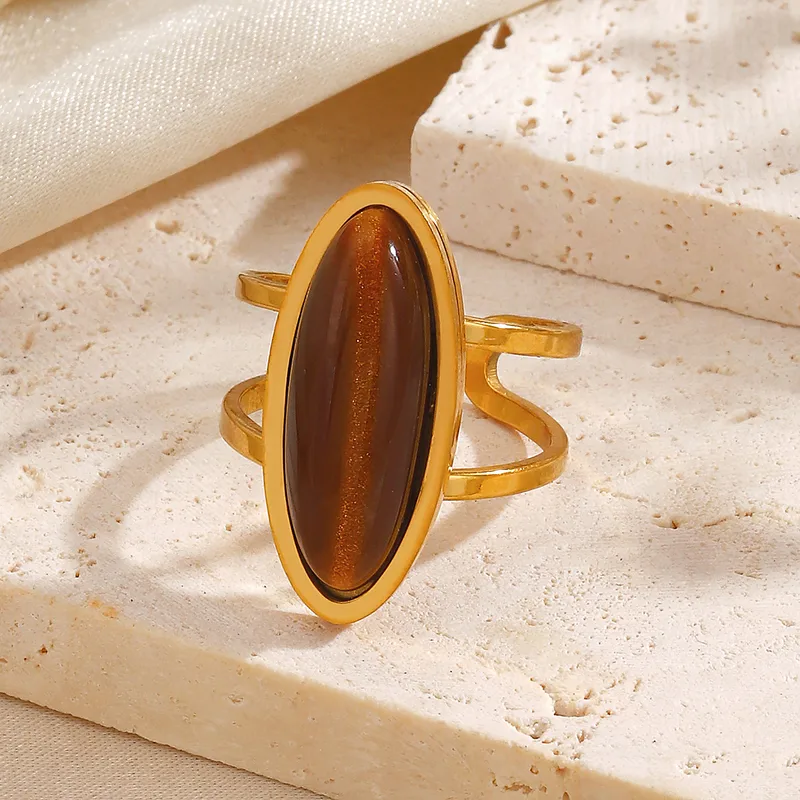 Anillo “Coffe Bean” en Acero Inoxidable y Chapado en Oro de 18K