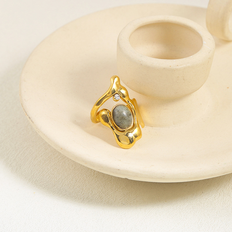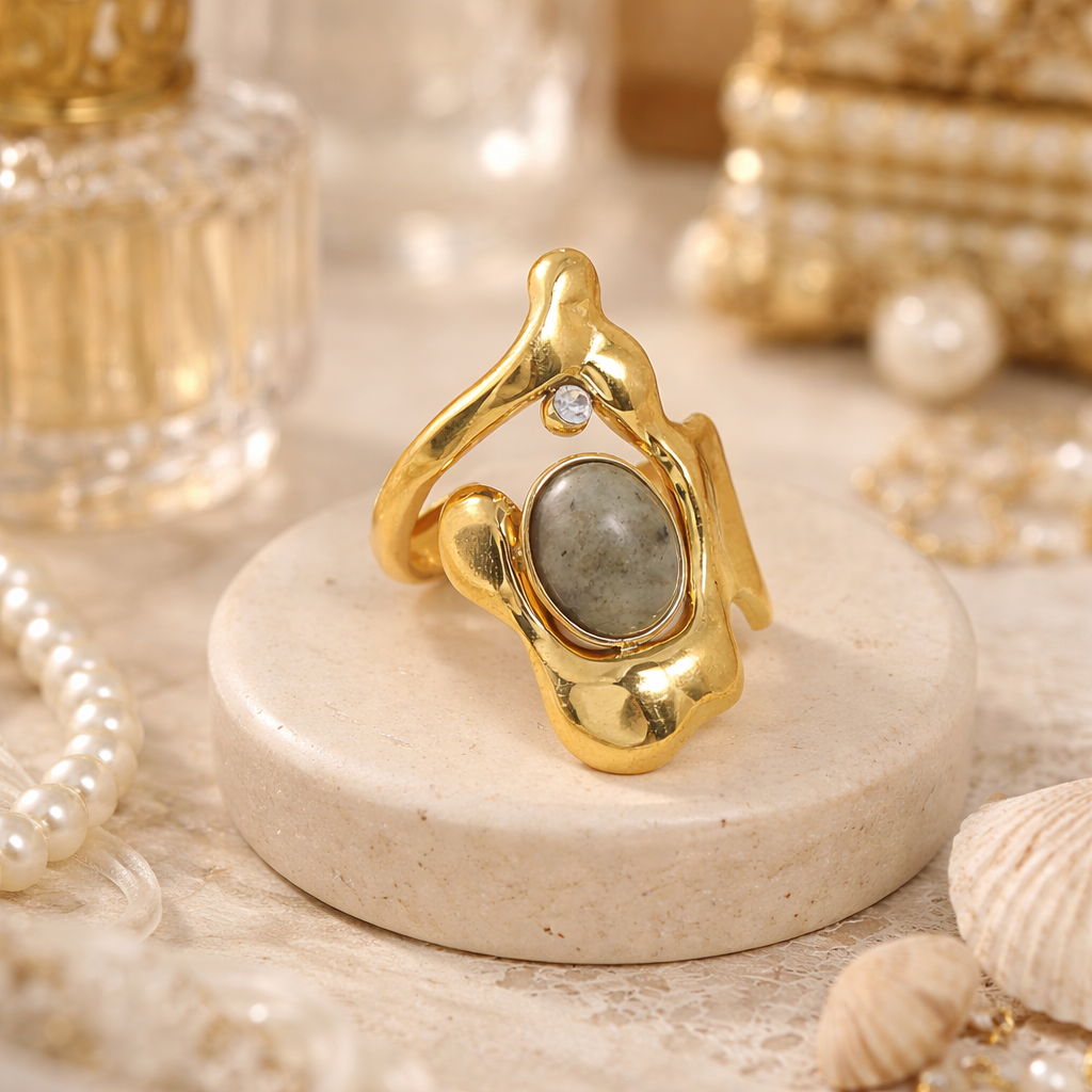 Anillo “Hechicera” con Piedra Natural en Acero Inoxidable y chapado en Oro de 18K