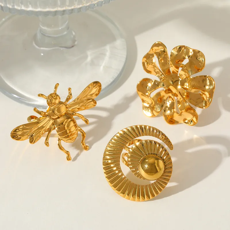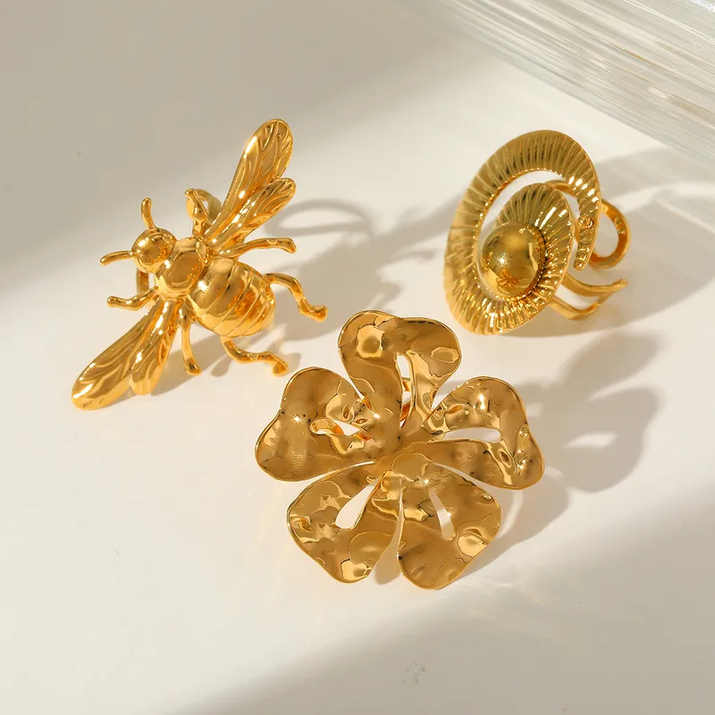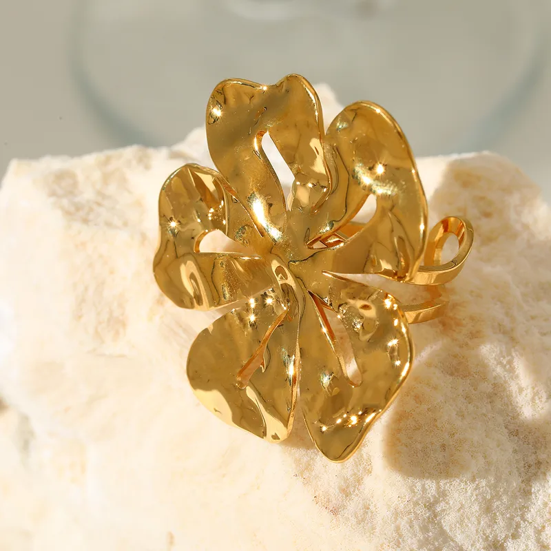Anillo Statement “Flower” en Acero Inoxidable y Chapado en Oro de 18K