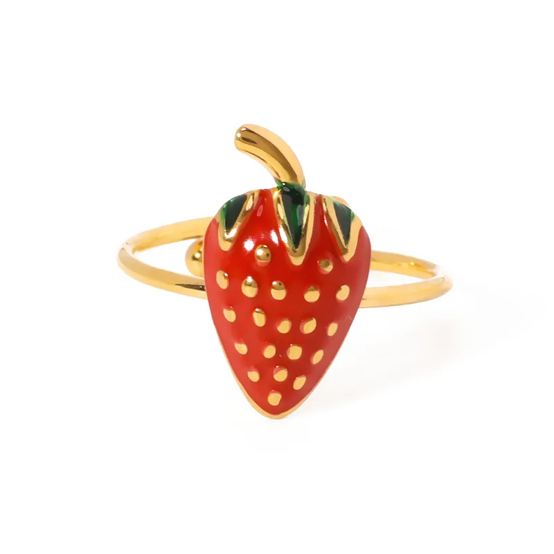 Anillo “Strawberry” en Acero Inoxidable y Chapado en Oro de 18K