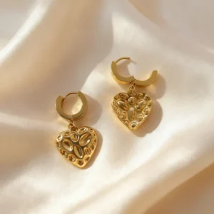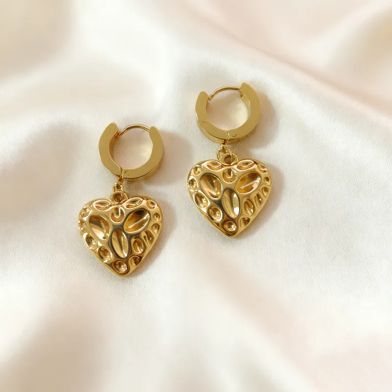 Aretes “Berry Heart” en Acero Inoxidable y Chapado en Oro de 18K