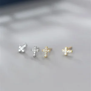 Aretes “Cross”con Zirconias en Plata 925 y Chapado en Oro de 18K