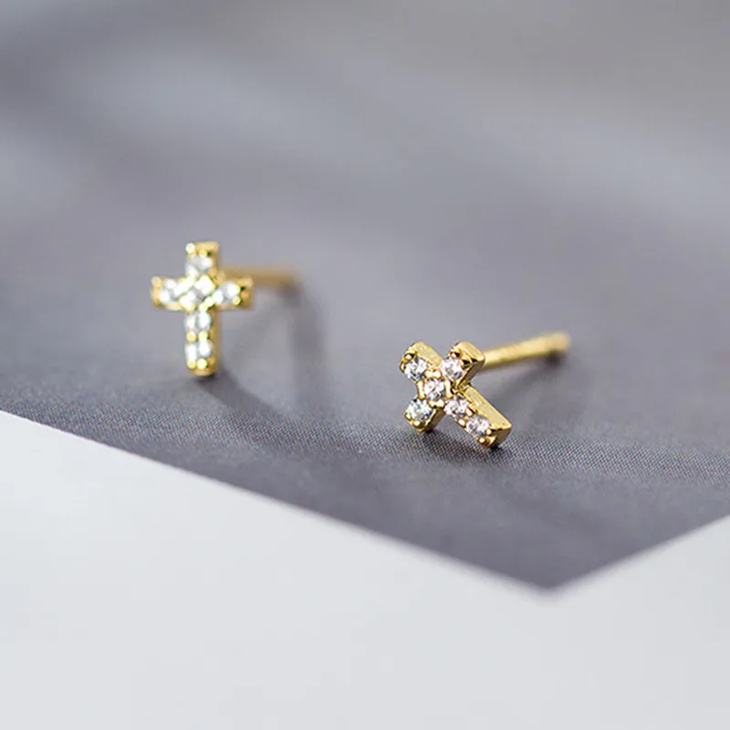 Aretes “Cross”con Zirconias en Plata 925 y Chapado en Oro de 18K