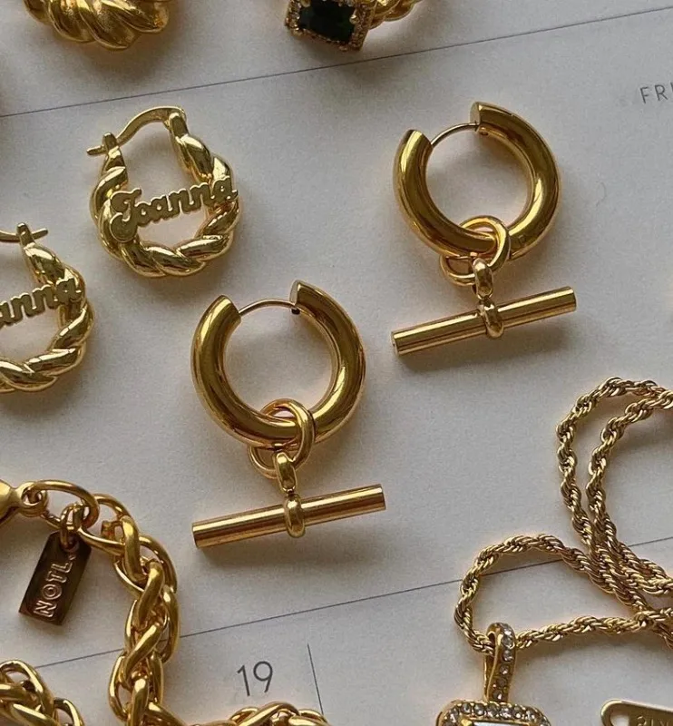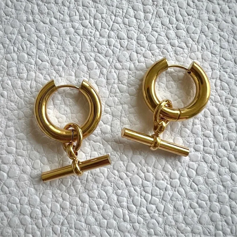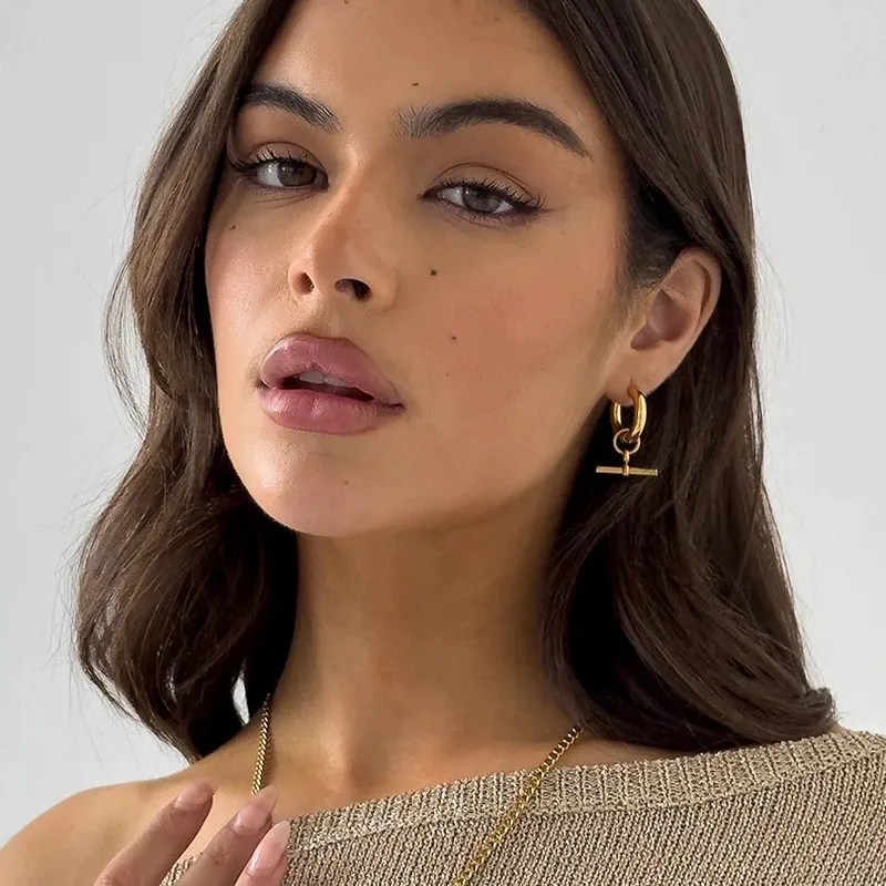 Arracadas “Suspendidas”en Acero Inoxidable y Chapado en Oro de 18K