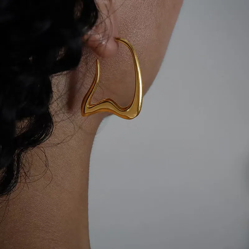 ARETES “WAVES” EN ACERO INOXIDABLE Y CHAPADO EN ORO DE 18K
