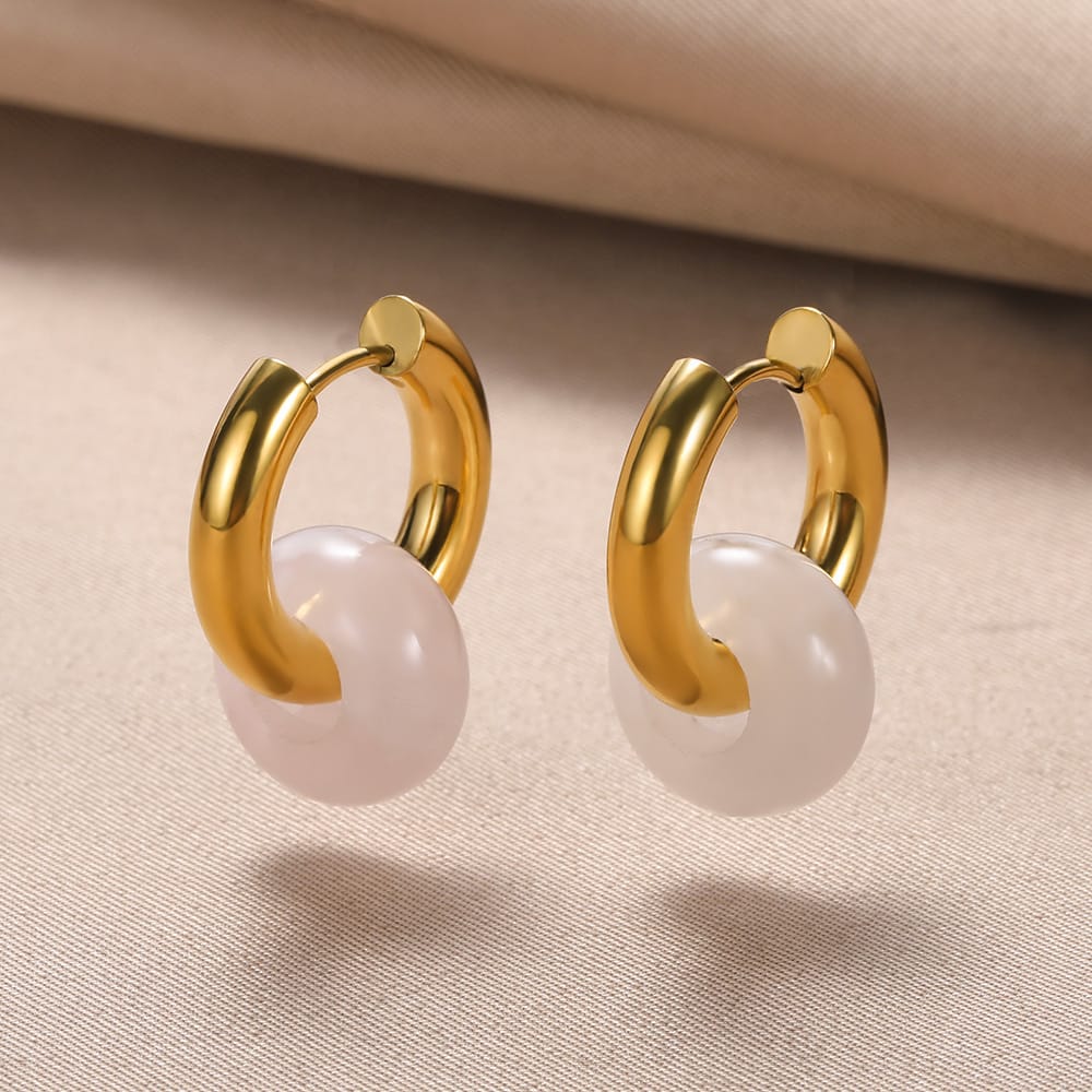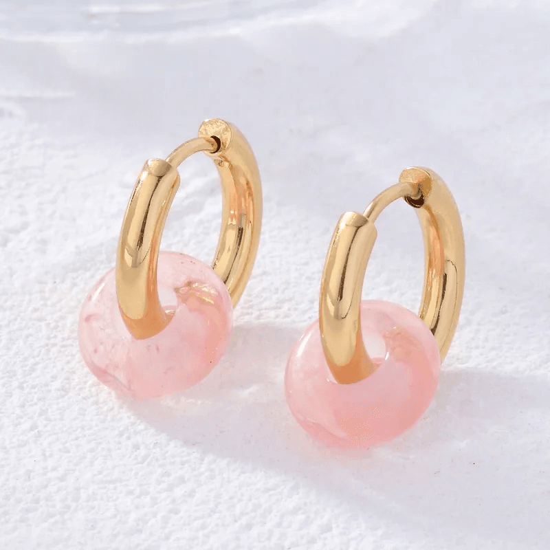 ARRACADAS EN ACERO INOXIDABLE Y CUARZO ROSA (PIEDRA NATURAL)