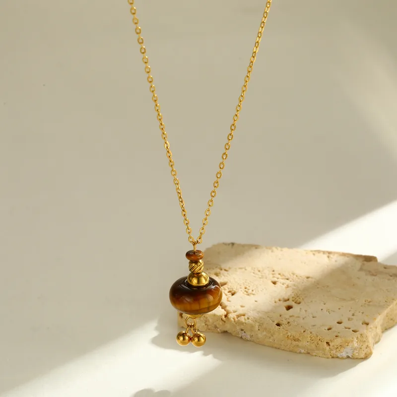 Collar “Agra”con Ojo de Tigre (Piedra Natural) en Acero Inoxidable y Chapado en Oro de 18K