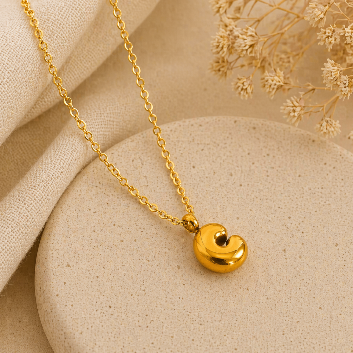 Collar con Inicial “C” Balloon en Acero Inoxidable y Chapado en Oro