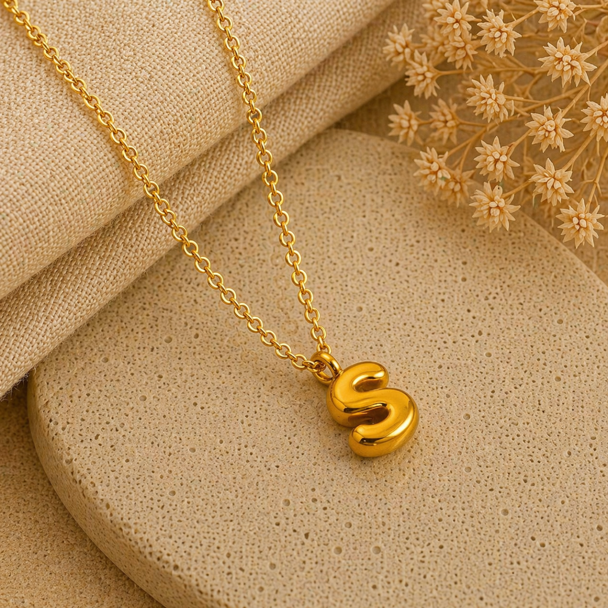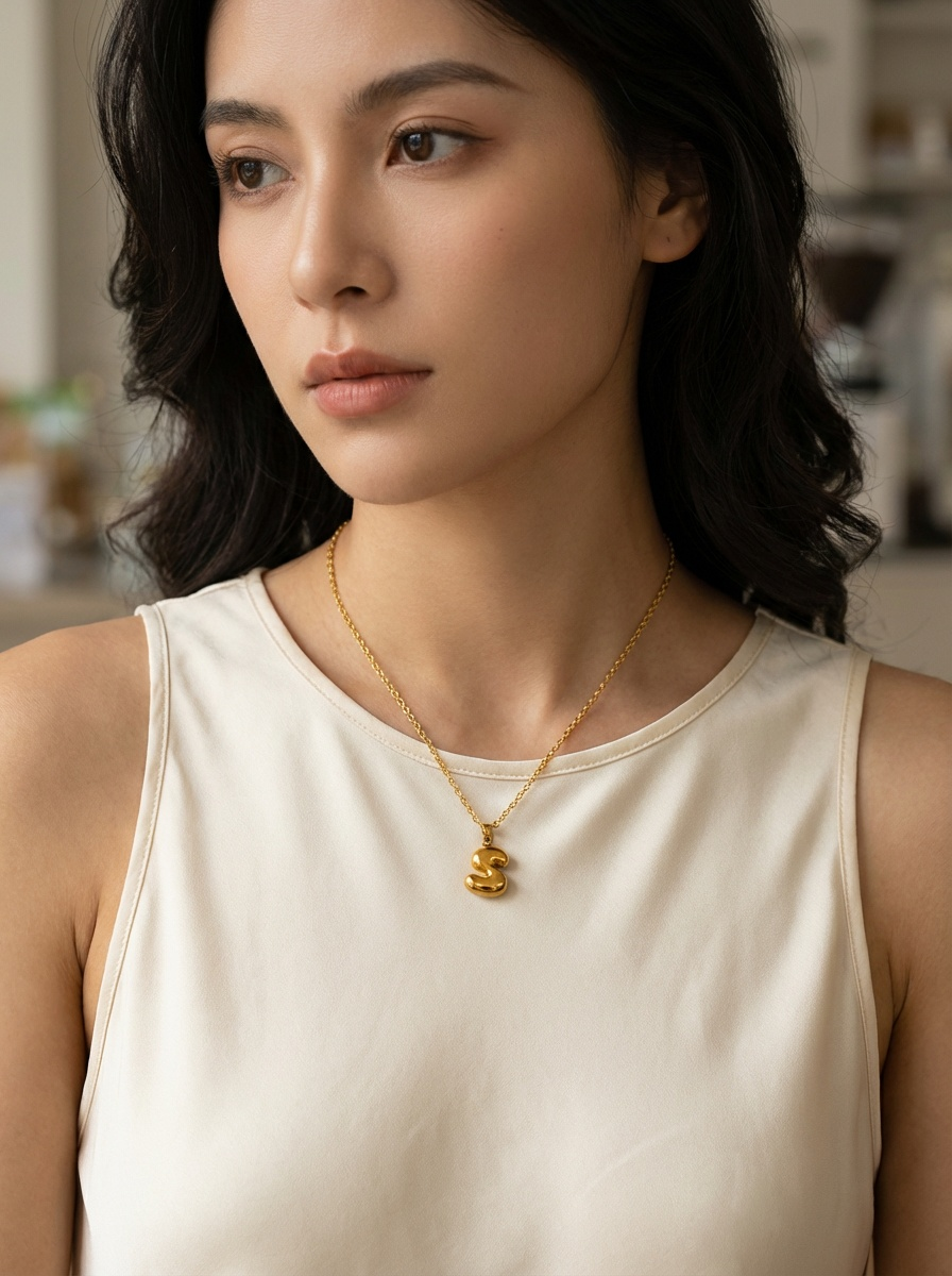 Collar con Inicial “S” Balloon en Acero Inoxidable y Chapado en Oro
