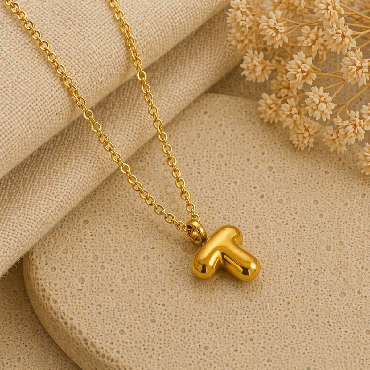 Collar con Inicial “T” Balloon en Acero Inoxidable y Chapado en Oro