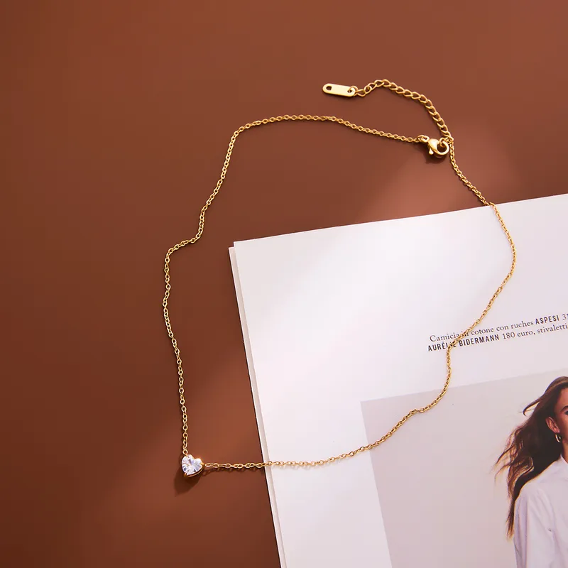 Collar “Diamond Heart” en Acero Inoxidable y Chapado en Oro de 18K