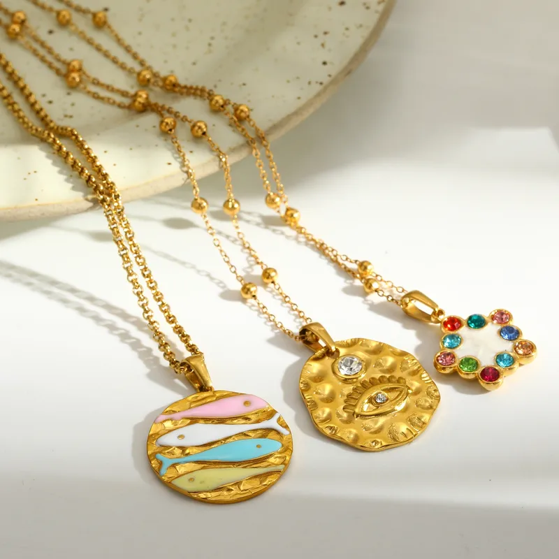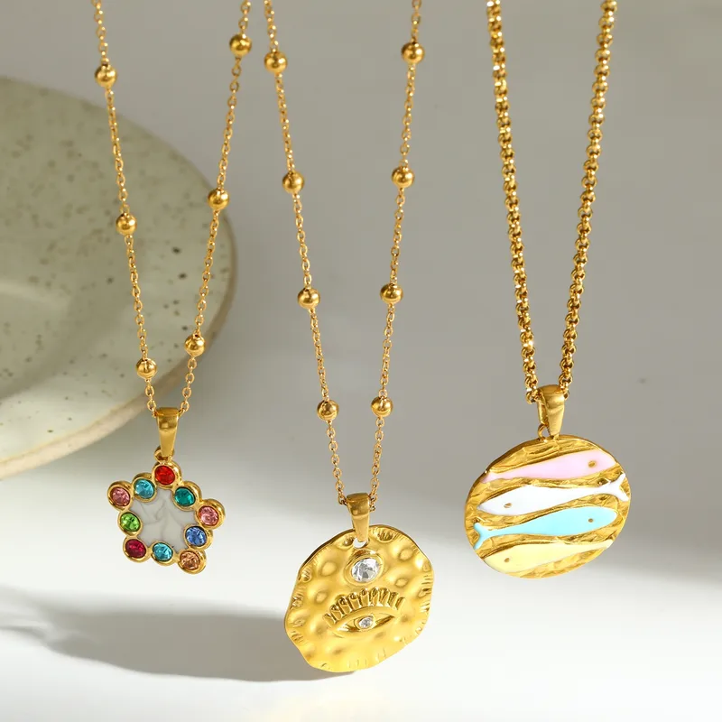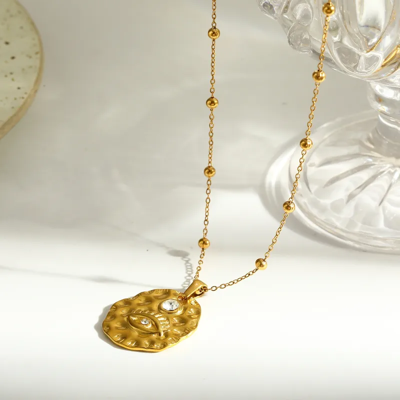 Collar “Oculus” Con Zirconia en Acero Inoxidable y Chapado en Oro de 18K