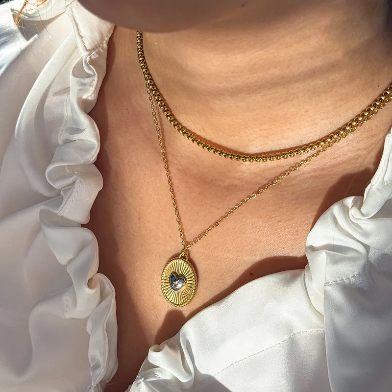 Collar “Sacred Heart” en Acero Inoxidable y Chapado en Oro de 18K