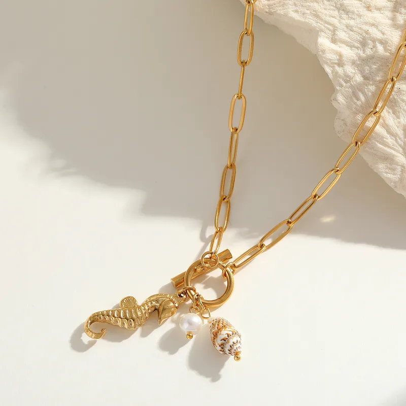 Collar “Sea Life” con Concha Natural en Acero Inoxidable Dorado