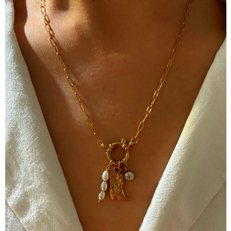 Collar “Western Charm” en Acero Inoxidable Quirúrgico y Chapado en Oro de18K