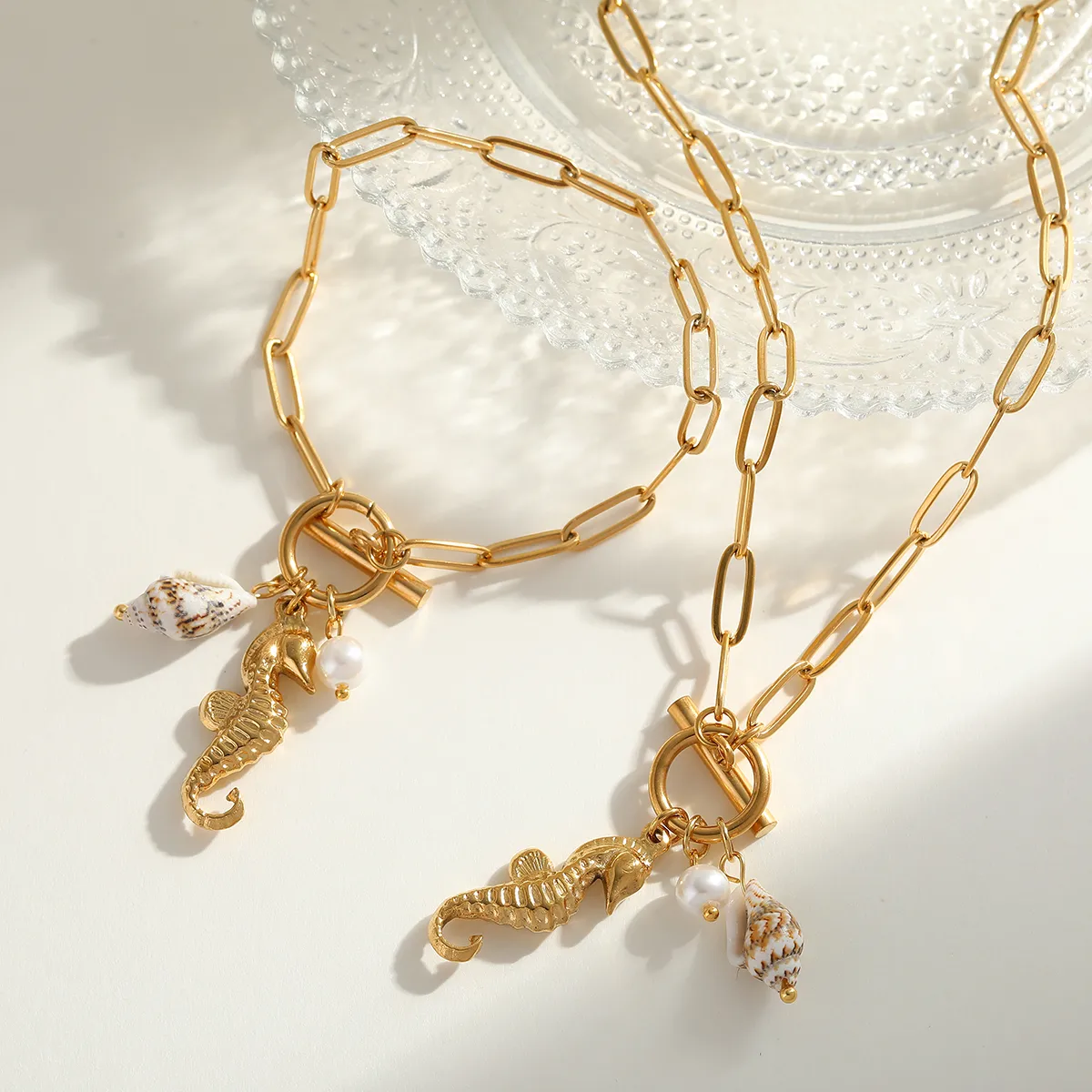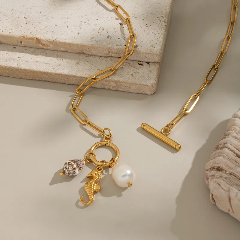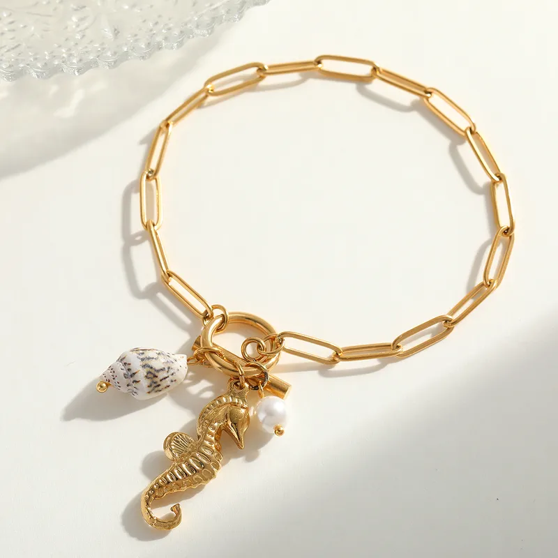 Pulsera”Sea Life” con Concha Natural en Acero Inoxidable Dorado