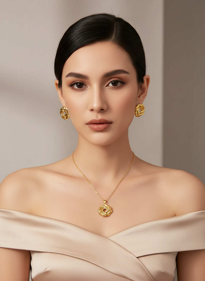 Set de Aretes y Collar “Nest” en Acero Inoxidable y Chapado en Oro